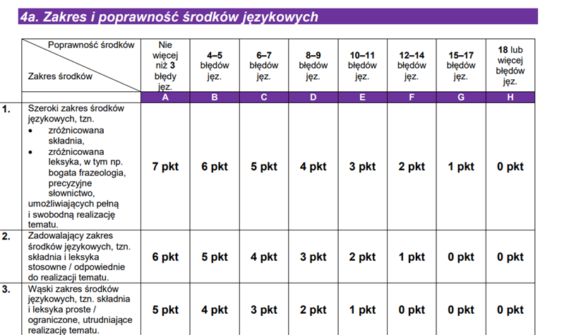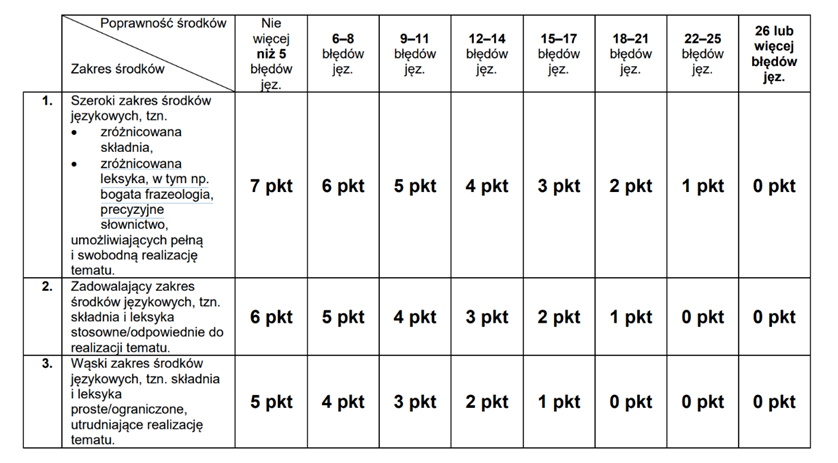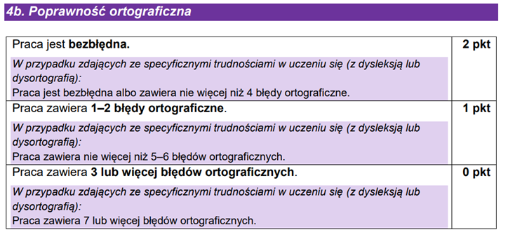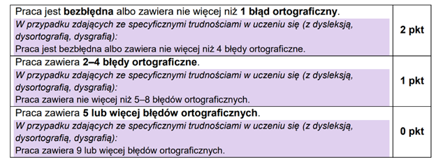 Różnica w ocenie: pierwsza tabelka dotyczy poziomu podstawowego, druga – rozszerzonego. Ortografia: