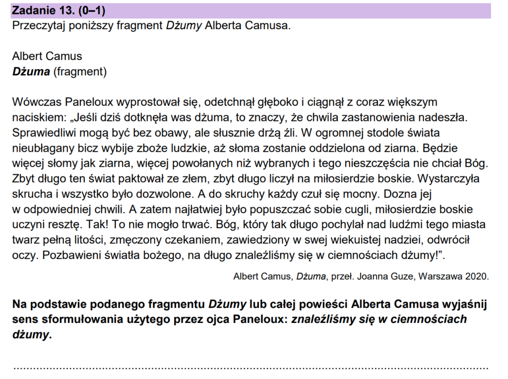 Zadanie: Udowodnij, że „Dżuma” to powieść – parabola. Odwołaj się do motta i treści utworu.